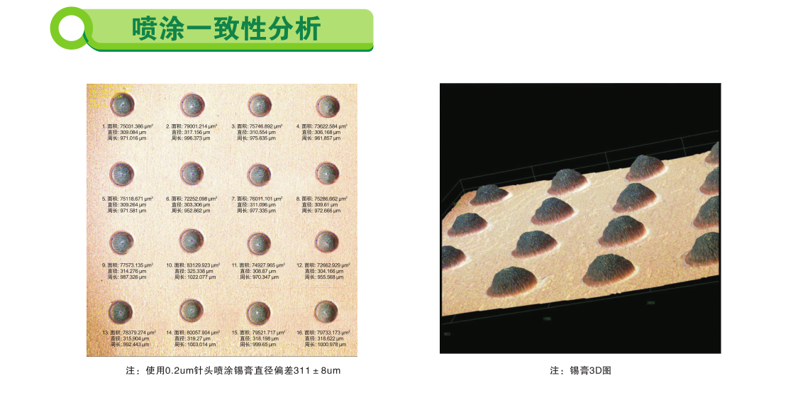 本ben產chan品pin應ying用yong在zai噴pen塗tu工gong藝yi,具ju有you噴pen塗tu工gong藝yi窗chuang口kou寬kuan,出chu錫xi量liang均jun勻yun焊han點dian一yi致zhi性xing好hao,錫xi膏gao不bu坍tan塌ta成cheng型xing好hao等deng特te點dian。膏gao體ti性xing質zhi穩wen定ding,滿man足zu長chang時shi間jian噴pen塗tu要yao求qiu,可ke多duo次ci冷leng藏zang回hui溫wen使shi用yong。